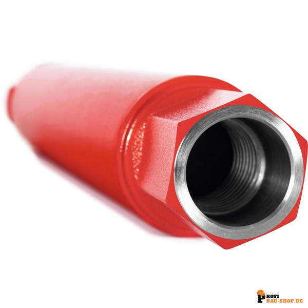 Die ROTHENBERGER Diamant-Bohrkrone DX HIGH SPEED Dry mit 1.1/4 Zoll UNC Gewindeaufnahme ist speziell für den professionellen Einsatz beim Trockenbohren konzipiert. Mit einer beeindruckenden Nutzlänge von 330 mm ermöglicht sie präzise Bohrungen mit einem Durchmesser von 68 mm. Die innovative 3D-Diamatrix-Technologie gewährleistet eine gleichmäßige Nutzung des gesamten Diamantsegments, was nicht nur die Effizienz steigert, sondern auch die Lebensdauer der Bohrkrone erheblich verlängert. Trockenbohren reduziert nicht nur die Schmutzentwicklung, sondern ermöglicht auch ein effizientes Arbeiten an Orten ohne direkte Wasserzufuhr.