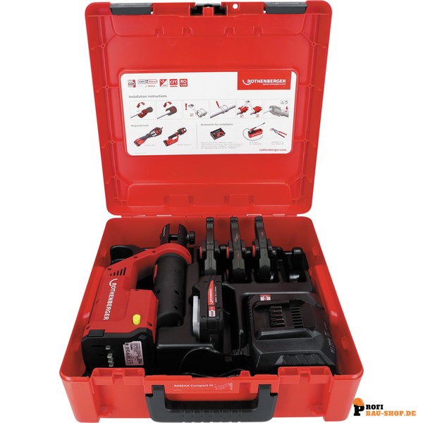 Bestellen Sie die ROTHENBERGER Pressmaschine Compact ROMAX COMPACT III Set M15-22-28, 2Ah, EU, CAS jetzt unkompliziert und bequem online bei Profi-Bau-Shop.de und lassen Sie sie sich direkt liefern!