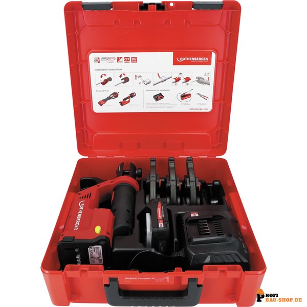 Bestellen Sie die ROTHENBERGER Pressmaschine Compact ROMAX COMPACT III Set TH16-20-26, 2Ah, EU, CAS jetzt unkompliziert und bequem online bei Profi-Bau-Shop.de und lassen Sie sie sich direkt liefern!