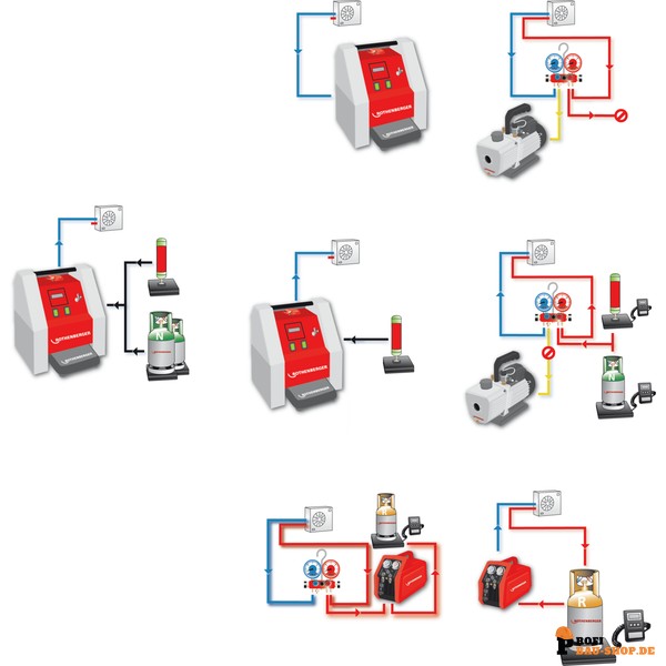 • Umgang mit verschiedenen Kältemitteln dank umfangreichem Zubehör.