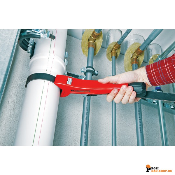 • Der unentbehrliche Helfer beim Einmuffen oder Fixieren von Kunststoffrohren mit größerem Durchmesser