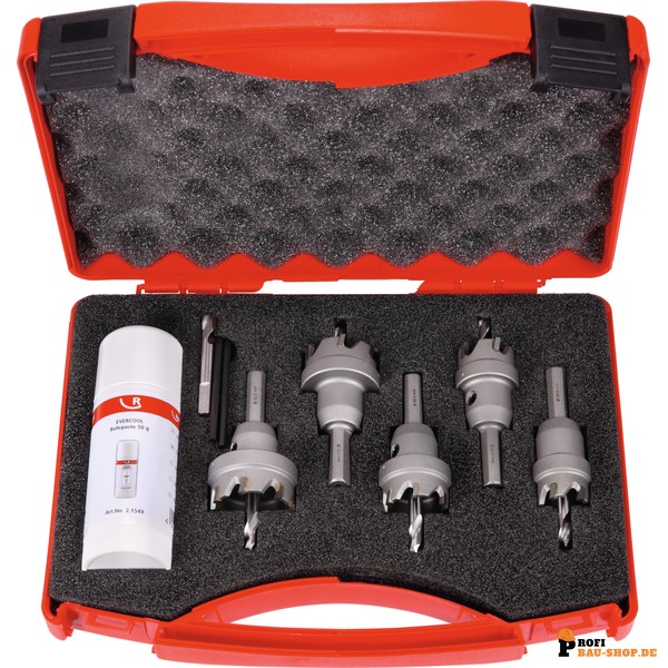 Das ROTHENBERGER Lochsägen-Set HM UNICUT ermöglicht präzises Schneiden kreisrunder Löcher (Ø 22-25-28-32-35mm) mit Hand- und Ständerbohrmaschinen. Dank rutschsicherem Schaft und positivem Spanwinkel ist es ideal für schnelle und saubere Arbeitsergebnisse.