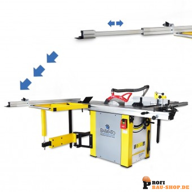 Die BAMATO Formatkreissäge BFKS-2000 bietet Profi-Präzision mit 2000 mm Schiebetisch, serienmäßiger Vorritzeinheit und kraftvollem 400V Motor. Ideal für ausreißfreie Schnitte in Plattenmaterial und Massivholz inkl. XXL-Lieferumfang.