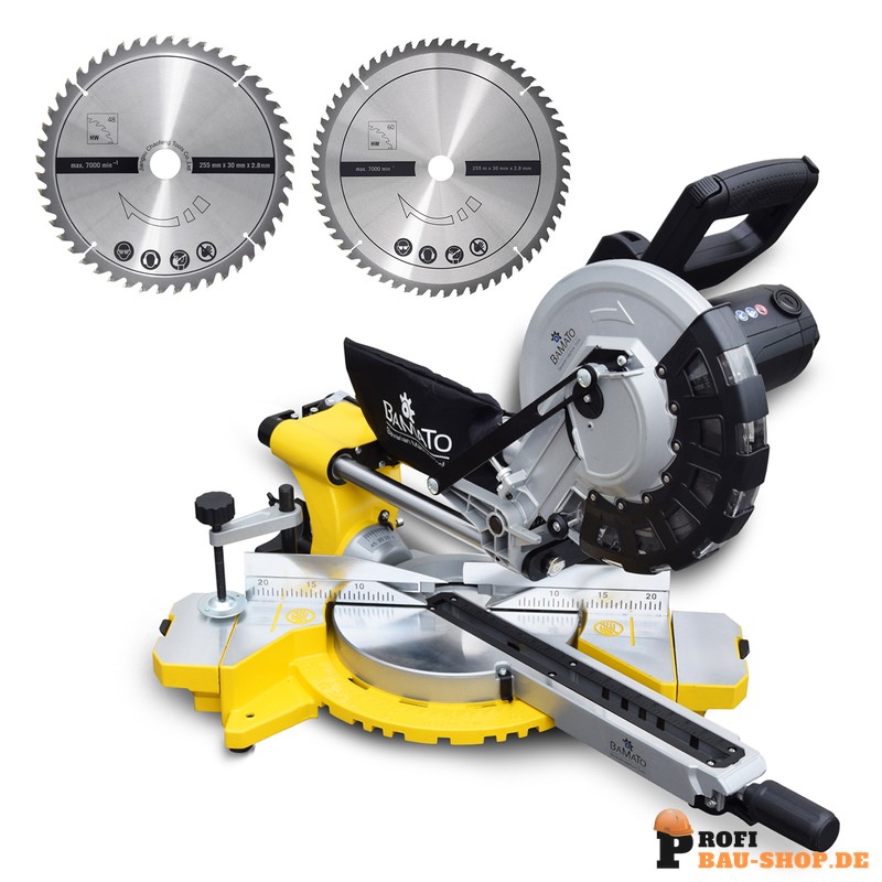 BAMATO KP-255 Zug- Kapp- und Gehrungssäge mit Laser und 2 Sägeblättern