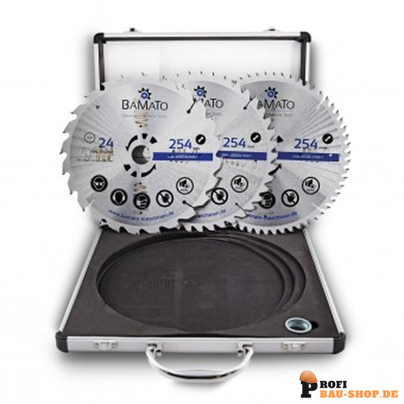 BAMATO 3-tlg HM-Kreissägeblattset Ø 254 mm für Holzbearbeitung inkl. Alukoffer