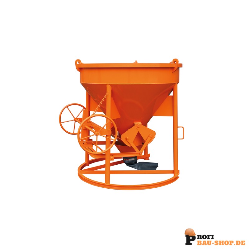 Ein herausragendes Merkmal des Eichinger Betonsilos 1016H.10 ist seine extra schwere und stabile Ausführung, die für maximale Sicherheit und Standfestigkeit sorgt. Die Handradbetätigung des Patentverschlusses ermöglicht eine feinfühlige und kontrollierte Entleerung des Betons, wodurch Materialverschwendung minimiert und die Genauigkeit beim Betonieren deutlich erhöht wird. Standardmäßig ist das Silo mit einer angeschweißten, geprüften Kette für die Kranaufhängung ausgestattet, was eine sichere und einfache Handhabung gewährleistet. Der zentrale Auslass, kombiniert mit einem 600 mm langen PVC-Schlauch von 150 mm Durchmesser, erlaubt eine flexible und präzise Platzierung des Betons auch an schwer zugänglichen Stellen.