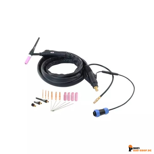 gasgekühlt, SteckerØ 13mm 35/50mm² inkl. UP/DOWN Leistungsregelung am Handgriff, Gasschlauch mit Quick Fit Stecker DN 5, inkl. 19-teiligen Erstausstattungsset (150A DC/105A AC @ 35% ED)