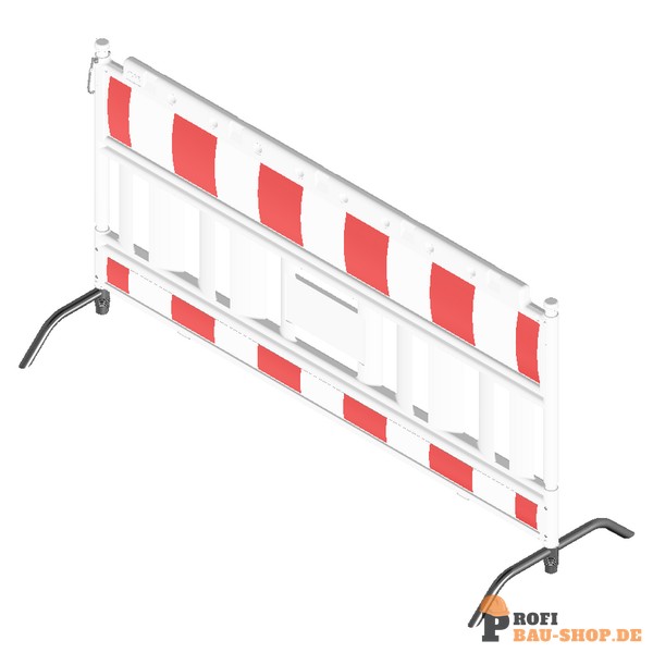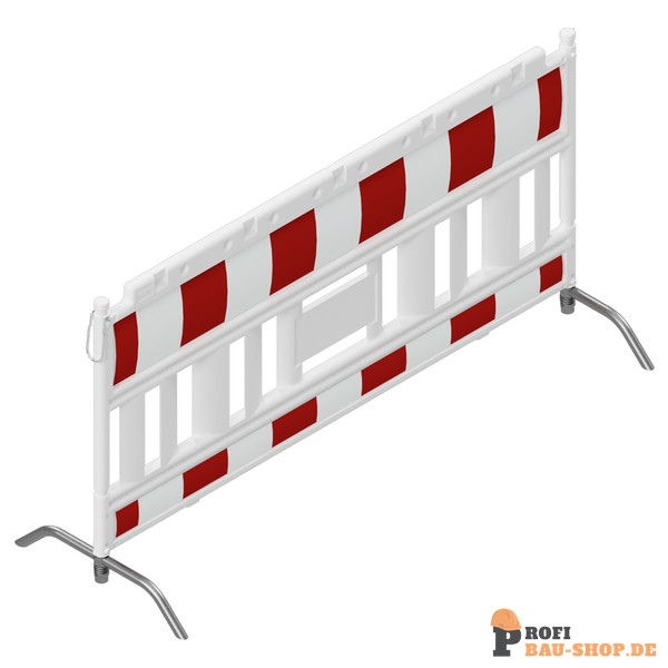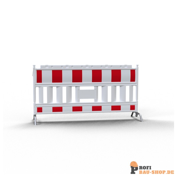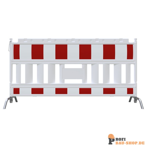 Robustes Schake EURO2 Absperrschrankengitter mit Füßen Typ NOX aus Kunststoff, mit Stahlfuß und retroreflektierender Folie.
