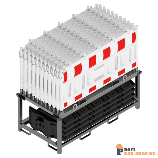 • Komplettlösung: Enthält 20 Absperrschrankengitter und 21 Fußplatten auf einer Traverse.