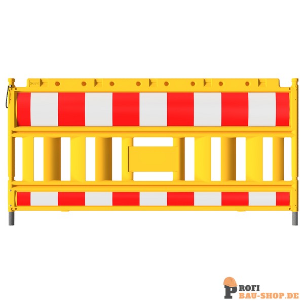 Das Schake EURO2 Absperrschrankengitter in Gelb mit rot/weißer NOX Folie (RA2/B) bietet höchste Sicherheit und ist ideal für Baustellen und Verkehrswege.