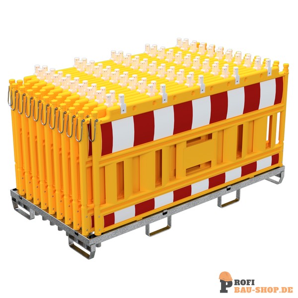 Technische Daten SET mit 20 Absperrschrankengitter auf Lager- und Transporttraverse, mit Lampenadapter, mit rot/weißer Folie, Typ RA1/A, Schrankentyp NOX gelb