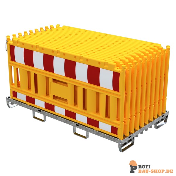 Technische Daten SET mit 20 Absperrschrankengitter auf Lager- und Transporttraverse, ohne Lampenadapter, mit rot/weißer Folie, Typ RA2/B, Schrankentyp NOX gelb