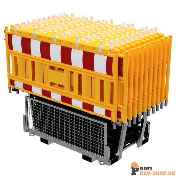 Schake SET mit 20 Absperrschrankengitter und 21 Fußplatten auf Twinpalette, mit Lampenadapter, mit rot/weißer Folie, Typ RA2/B, Schrankentyp NOX gelb