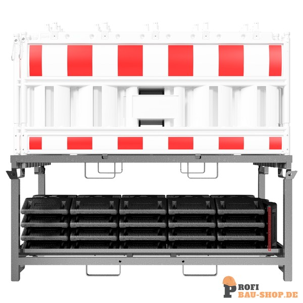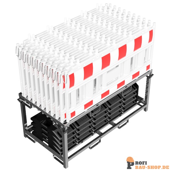 Absperrschrankengitter SET5 bestehend aus: 1 x Lager- und Transporttraverse für Absperrschrankengitter (Art.-Nr. 32003) 1 x Lager- und Transporttraverse für Fußplatten (Art.-Nr. 3B214) 20 x Absperrschrankengitter 21 x TL-Fußplatte nach K1, 30 kg (Art.-Nr. 31991)