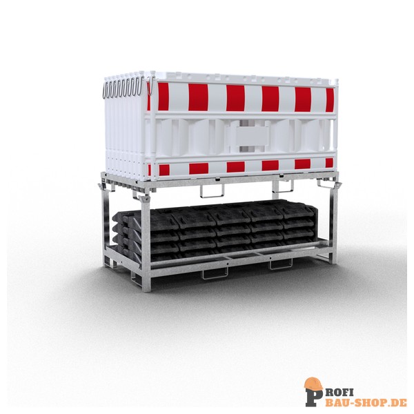 Effiziente Lagerung & Transport: Praktische Traverse für 20 Gitter und 21 Fußplatten.