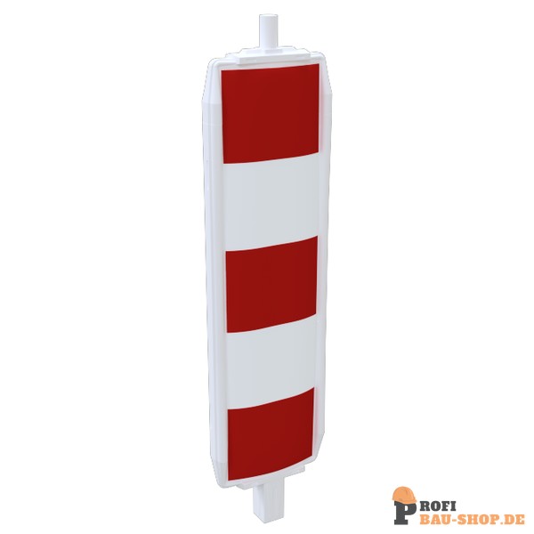 Die Schake Kunststoffbake Typ 60 ist doppelseitig mit horizontal geblockter Folie Typ RA1/A in rot/weiß beklebt und bietet hohe Sichtbarkeit sowie Schutz durch ihre robuste Bauweise.