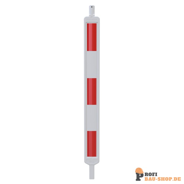 Die Schake Kunststoffbake Typ BE mit Folie Typ RA1/A ist einseitig rechts- oder linksweisend und bietet eine zuverlässige Absperrung. Sie ist beklebt mit horizontal geblockter Folie rot/weiß und verfügt über einen geschützten Folienbereich durch die Außenkante für erhöhte Langlebigkeit.