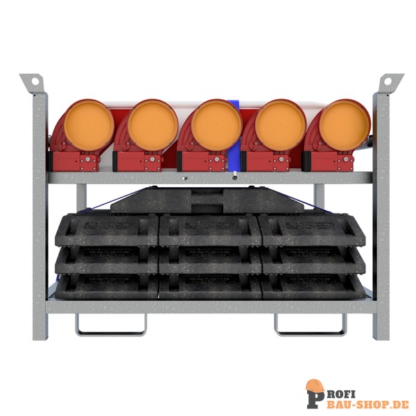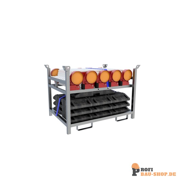 36NOX-SET3 bestehend aus: 1x Lager- und Transportpalette (Art.-Nr. 3NOX-5V) 10x TL-Fußplatte nach K1 (Art.-Nr. 31NOX) 10x Bast Bakenleuchte rot (Art.-Nr. 33NOXG2) 10x Bake 2x Zurrgurt (Art.-Nr. 50252-4)