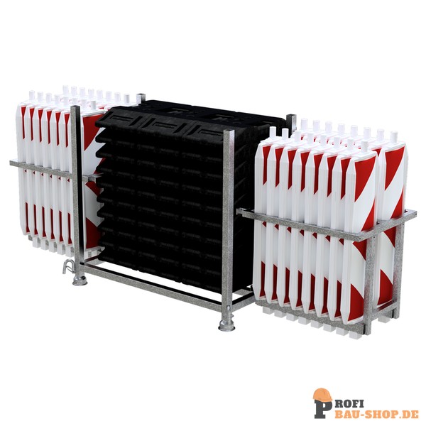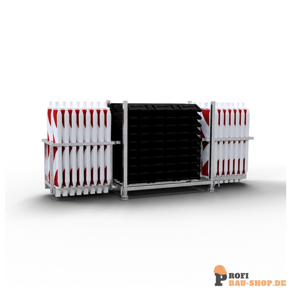 Technische Daten SET mit 30 Baken und Zubehör auf Stapelpalette und Bakenkorb, mit Folie Typ RA1/A, rot/weiß, doppelseitig pfeilförmig, Kunststoffbake Typ 60