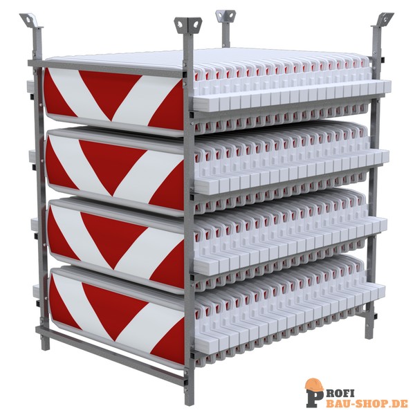 Technische Daten SET mit 80 Baken auf Lager- und Transportgestell, Folie Typ RA2/B, pfeilförmig, doppelseitig rechts- / linksweisend, Wendebake Typ 60W