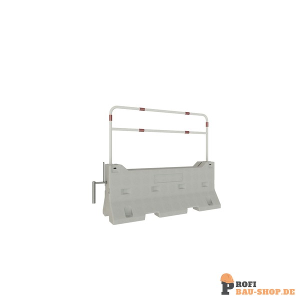 Betonleitwand SET 3 bestehend aus: 1 x Betonleitwand, zertifiziert nach ISO 22343-1: 2023 (Art.-Nr. 3F200) 1 x Verbindungselement (Art.-Nr. 3F200-1) 2 x Sicherungsbolzen (Art.-Nr. 3F200-2) 1 x Rohrbügel 2 x Bodenhülse