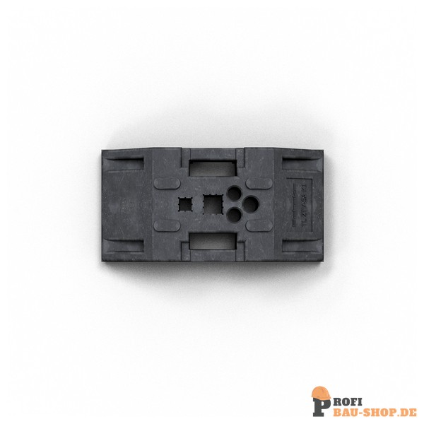 TL-Fußplatte nach K1 zum Aufstellen von Schrankenzäunen, Schaftrohren, Baken aus Kunststoffrecycling hergestellt, mit seitlichen Tragegriffen für eine praktikable Handhabung. Einstecktaschen: 1 x 40 x 40 mm 1 x 60 x 60 mm 2 x Ø 42 mm 1x Ø 48 mm Abmaße: Breite: 380 mm Länge: 750 mm Höhe: 130 mm Geprü