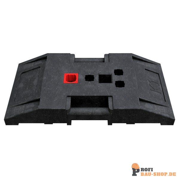 Fußplatte nach K1 Typ NOXPLUS zum Aufstellen von NOXPLUS Baken, aus Kunststoffrecycling hergestellt, mit seitlichen Tragegriffen für eine praktikable Handhabung. Einstecktaschen: 2 x 60 x 60 mm inkl. Adapter: 1 x Ø 53 mm 3 x 40 x 40 kombiniert mit Ø 42 mm Abmaße: Breite: 400 mm Länge: 800 mm Höhe: 1