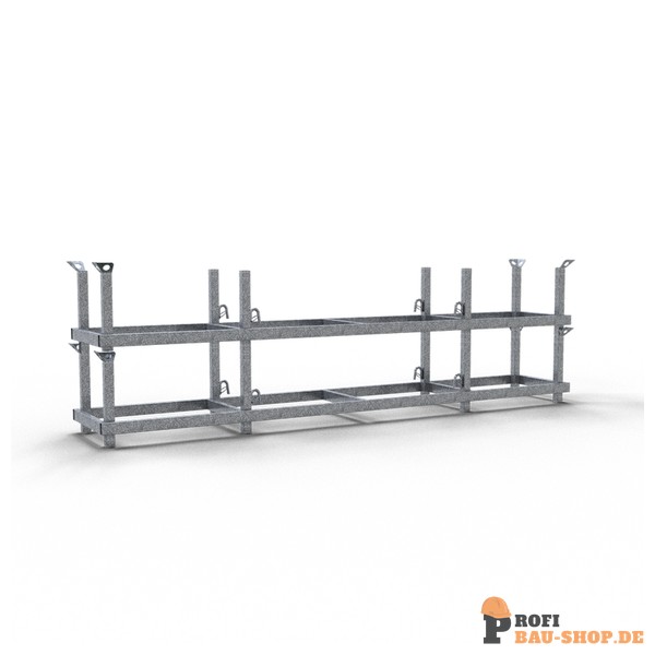 Die Schake Langguttraverse ist eine robuste und langlebige Lösung für den sicheren Transport und die Lagerung von Langgütern. Mit ihren großzügigen Füllmaßen von 3,80 m x 0,50 m x 0,40 m und Außenmaßen von 4,00 m x 0,70 m x 0,56 m ist sie speziell für den professionellen Einsatz konzipiert. Diese hochwertige Traverse ist feuerverzinkt, kranbar und bis zu 4-fach stapelbar, was eine effiziente Nutzung Ihres Lagerplatzes ermöglicht und die Handhabung von langen Materialien wie Rohren, Profilen oder Holzstämmen erheblich vereinfacht. Vertrauen Sie auf die Qualität von Schake für Ihre Lager- und Transportbedürfnisse.