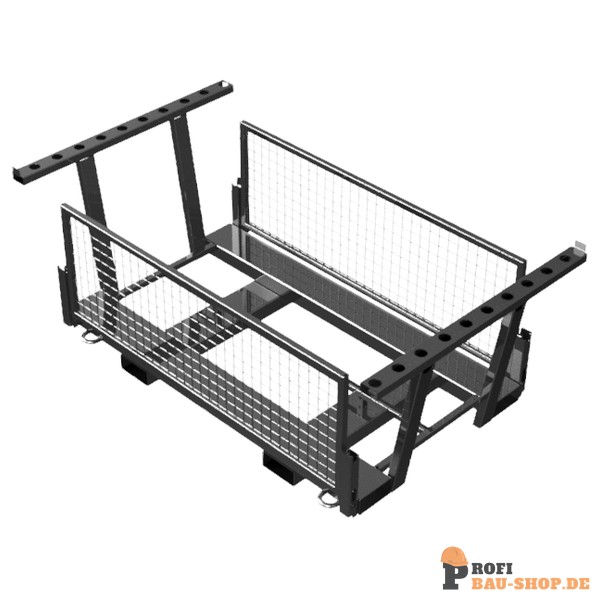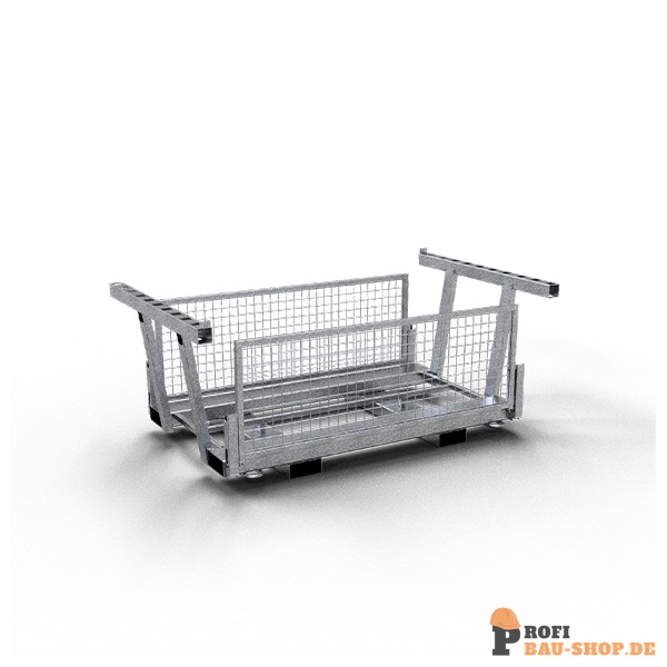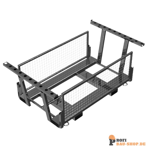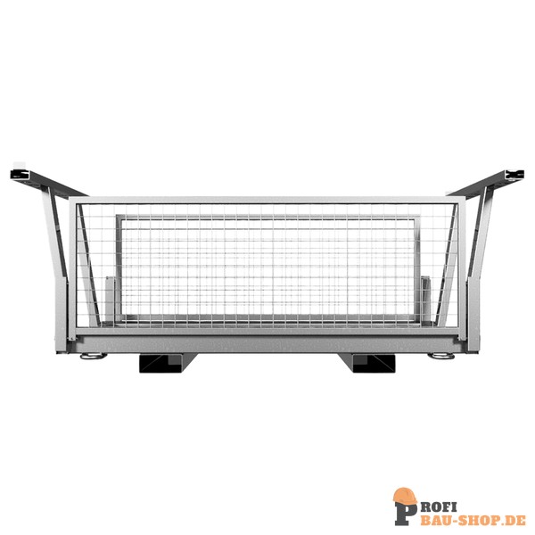 • umlegbare Seitenteile ermöglichen sicheren Transport und zeitgleiche Entnahme von Schrankenzäunen und Fußplatten