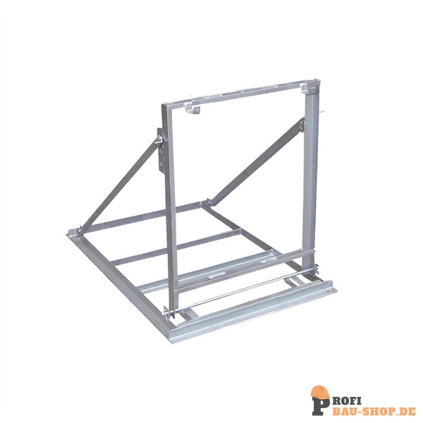 Lattenständer, verzinkt stabile Konstruktion aus Stahl verschweißt, klappbar für den platzsparenden Transport, sowie die Lagerung, Position mit Bolzen und Sicherungssplint an Kette feststellbar, geeignet zum Einstecken von Holzlatten senkrecht in dafür vorgesehene Bügel, Breite: 750 mm, Länge: 1025
