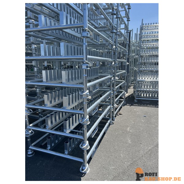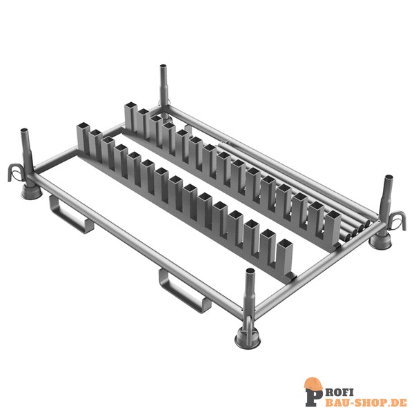 Feuerverzinkt: Alle relevanten Komponenten der Stapelpalette sind mit einer dicken Schicht Zink versehen. Diese Feuerverzinkung bietet einen hervorragenden Korrosionsschutz, macht das Material extrem langlebig und widerstandsfähig gegenüber Umwelteinflüssen, was eine lange Lebensdauer des Produkts garantiert.