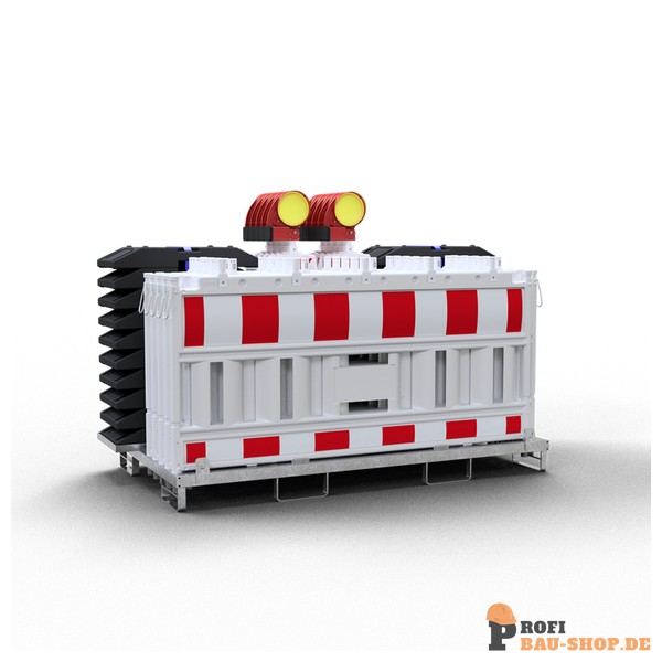 Schake Verkehrssicherungs-SET mit 10 Absperrschrankengittern, Baken, Fußplatten und Bakenleuchten, inkl. Transporttraverse