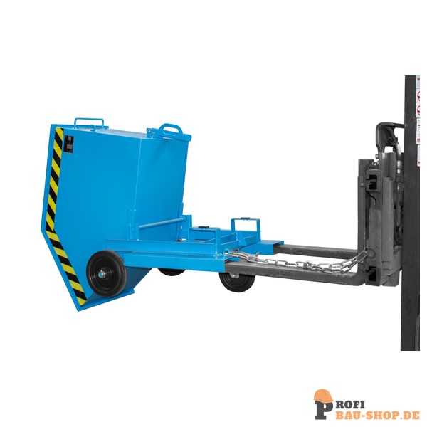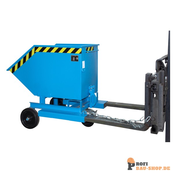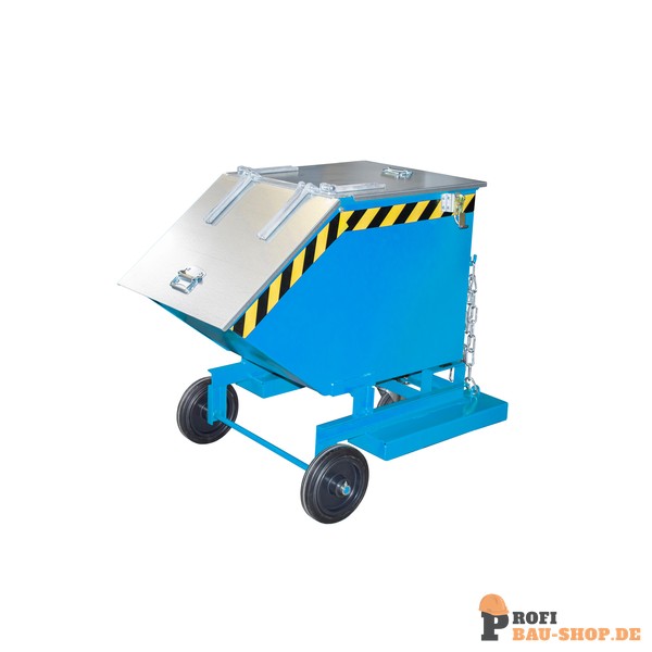 Der Bauer Südlohn Kastenwagen KW-ET 250 in Lichtblau ist ein robuster, fahrbarer Stahlblechbehälter mit 250 Litern Volumen. Er bietet eine manuelle Kippfunktion für ebenerdige Entleerung, sichere Einfahrtaschen und ist öl- sowie wasserdicht. Ideal für Transport und Entsorgung von Schüttgütern.