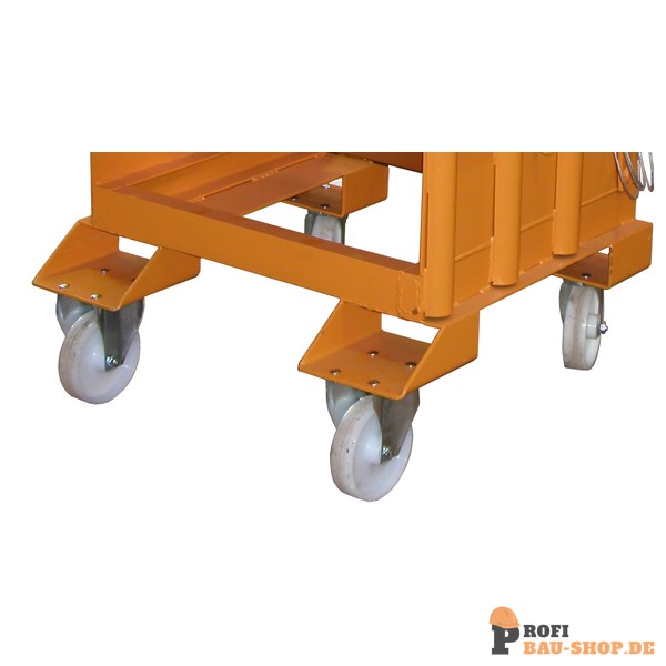 • Stabiler Grundrahmen mit Einfahrbügeln für sichere Aufnahme durch Stapler