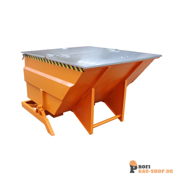 Der Bauer Südlohn Kippbehälter BKC 200 in Gelborange ist ein robuster Großraumbehälter (2,00 m³, 2500 kg Tragfähigkeit). Mit seitlichem Drehlager, stabilen Einfahrtaschen und Abrutschsicherung. Kippvorgang bequem per Zugseil. Ideal für effiziente Materialentsorgung.