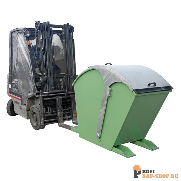 Bauer Südlohn Kippbehälter RD 750 mit Runddeckel, Resedagrün lackiert für Stapler und Gabelstapler