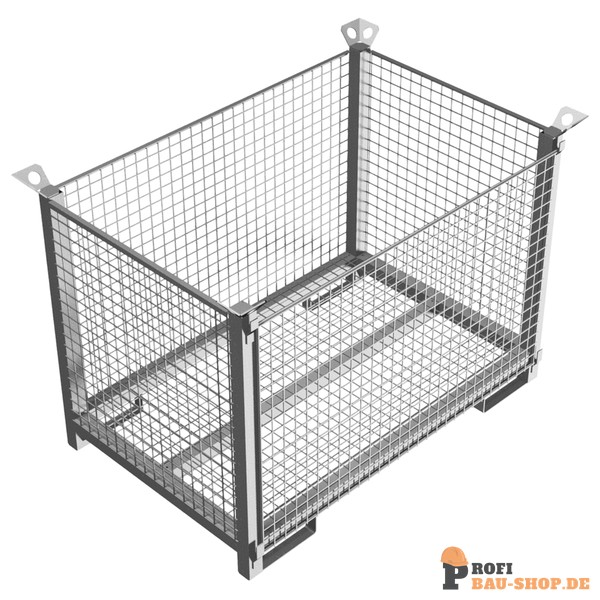 Robuste Schake Transportbox aus feuerverzinktem Stahlgitter für den sicheren Transport und die Lagerung von bis zu 35 Fußplatten. Kranbar und zweiseitig unterfahrbar.