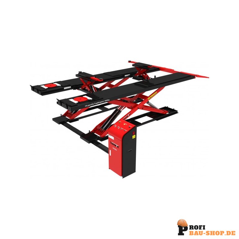 Wematik Scherenhebebühne Austin mit integriertem Achsfreiheber 5T, ultraflache Überfahrhöhe 130mm für professionelle Werkstätten