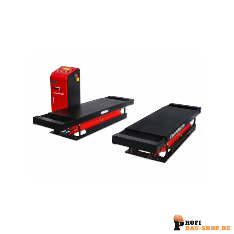 Diese Doppelscherenhebebühne beschleunigt Routinearbeiten wie Reifenwechsel, Inspektionen, Wartungen und Reparaturen am Unterboden erheblich. Die langlebige Profi-Qualität wird durch eine Prüfung nach Maschinenrichtlinie Anhang IV mit Baumusterprüfung bestätigt, was höchste Sicherheitsstandards garantiert. Eine extra starke Scherenkonstruktion (40 mm x 80 mm) und eine 16 mm starke Stahlblech-Bodenplatte sorgen für außergewöhnliche Stabilität und eine lange Lebensdauer, selbst bei intensivem Werkstattbetrieb. Die beidseitig ausziehbaren Auflageflächen bis 2040 mm passen sich flexibel an verschiedene Radstände an.