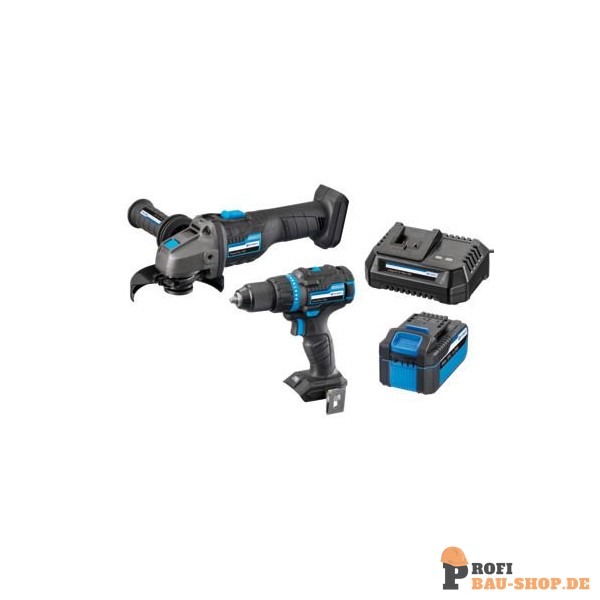 • Leistungsstarkes 18 V Akku-System mit Schlagbohrschrauber und Winkelschleifer