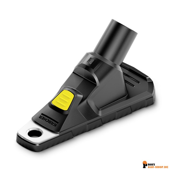 • Flexible Positionierung: Durch einfaches Drücken des gelben Schalters lässt sich die Position des Bohrstaubfängers ohne Ausschalten des Saugers anpassen.