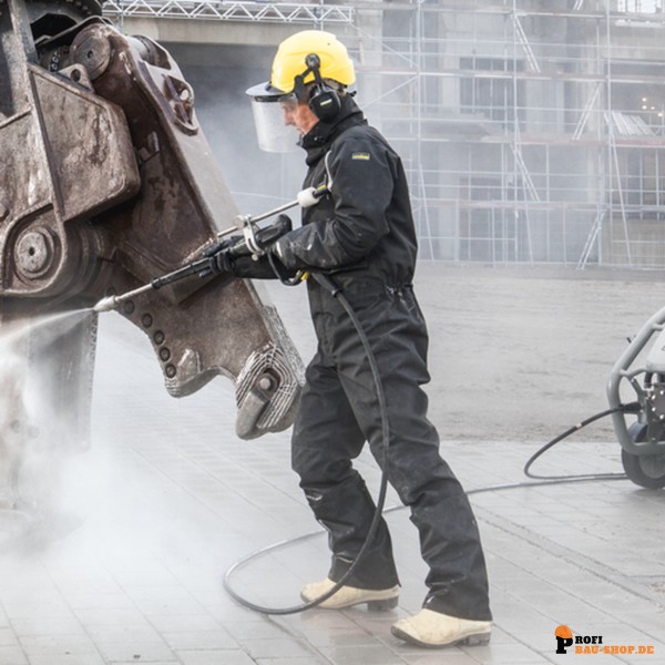 Der Kärcher HD Schutzanzug in Größe L ist ein unverzichtbares Equipment für professionelle Anwender, die mit extrem hohen Wasserdrücken von bis zu 1000 bar arbeiten. Entwickelt, um Anwender und Dritte zuverlässig vor direkten Risiken durch Hochdruckwasserstrahlen zu schützen, minimiert er das Verletzungsrisiko bei Missgeschicken oder Unfällen. Trotz seiner robusten Schutzfunktionen überzeugt dieser Anzug durch eine besonders leichte Ausführung, die ein angenehmes Tragegefühl und maximale Bewegungsfreiheit gewährleistet. Darüber hinaus ist er mit reflektierenden Elementen für erhöhte Sichtbarkeit ausgestattet, komplett wasserdicht, abrieb- und schnittfest, sowie waschbar und atmungsaktiv.