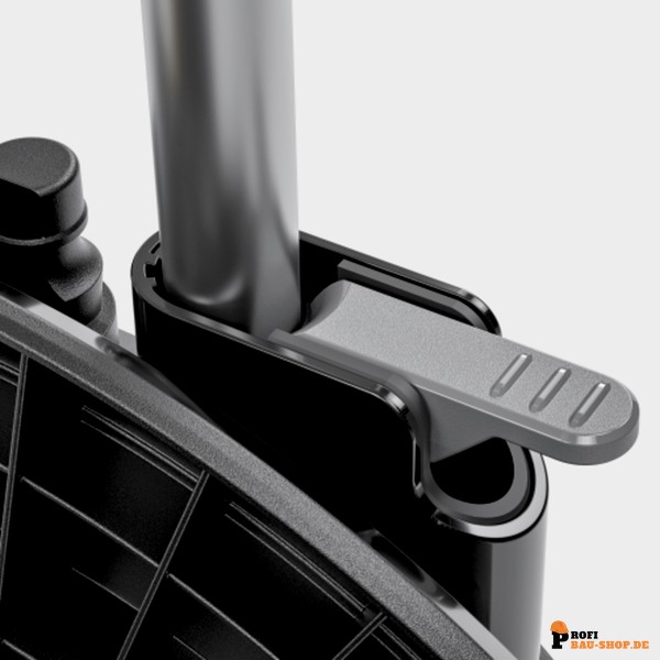 • Platzsparende Aufbewahrung: Der teleskopierbare Handgriff mit Schnellspanner und die faltbare Handkurbel ermöglichen eine kompakte Lagerung.