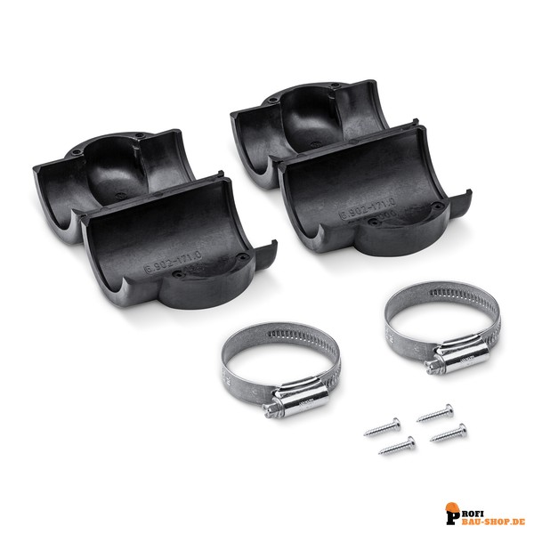 Das Kärcher Schlauch Montageset DN40 ohne Endstücke ist ein mehrteiliges Set für sichere Schlauchanschlüsse in Nennweite DN 40. Es enthält jeweils zwei schwarze Schlauchmanschetten und die passenden Rohrschellen für eine einfache und zuverlässige Montage.