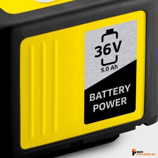 • Leistungsstarker 36 V / 5,0 Ah Akku: Optimale Energieversorgung für ausdauerndes Arbeiten mit allen 36V Kärcher Geräten.