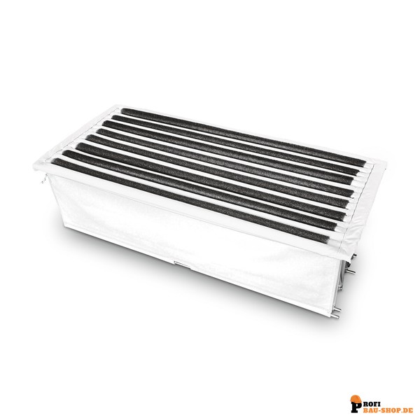 Der Kärcher Taschenfilter weiß ist eine essentielle Komponente für die leistungsstarke Kehrsaugmaschine KM 150/500 R D Classic. Speziell entwickelt, um auch anspruchsvollste Reinigungsaufgaben zu meistern, fängt dieser Filter zuverlässig sehr feine Stäube sowie große Schmutzmengen auf. Mit beeindruckenden Maßen von 1100 × 500 × 320 mm und einer riesigen Filterfläche von 10,5 m² gewährleistet er eine exzellente Luftqualität und schützt gleichzeitig die Maschinenkomponenten vor Verschleiß. Dies trägt maßgeblich zur Langlebigkeit Ihrer Kehrsaugmaschine und zur Effizienz Ihrer Reinigungsprozesse bei.