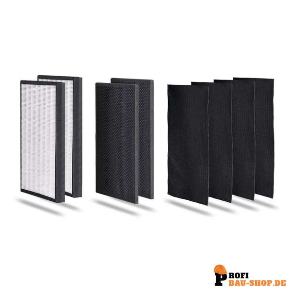 4x Filterschaummatte, 2x Aktivkohlegranulatkassette, 2x H13 HEPA-Filter