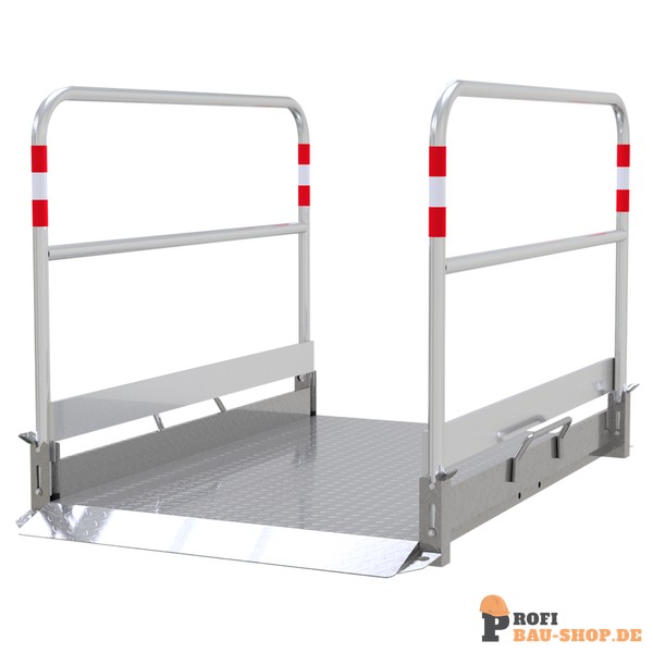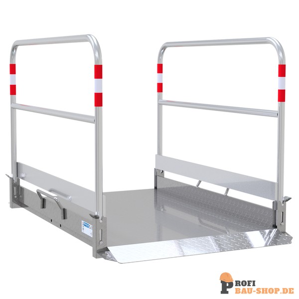 • Belag besteht aus rutschsicherem Alu-Tränenblech 3/4 mm