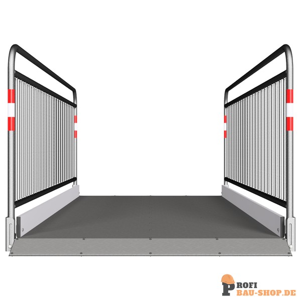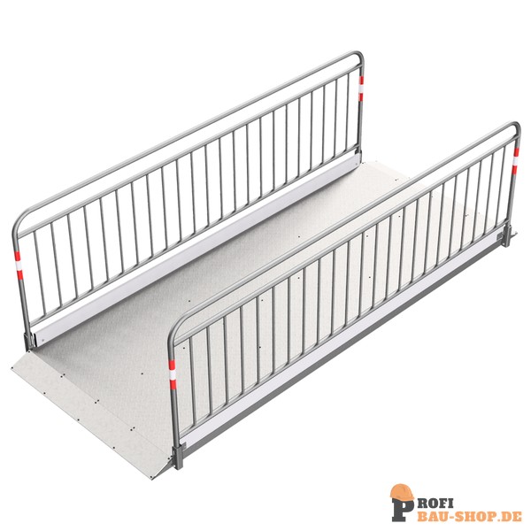 • die Seitengeländer sind mit rot-weiß-roten Reflektorstreifen ausgestattet